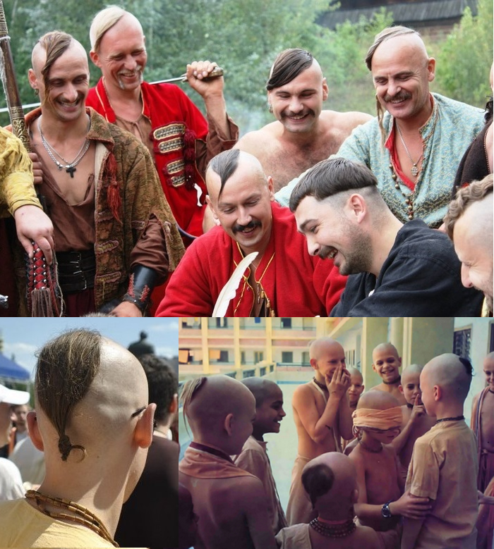 - Обязывают брить только мужиков, ни одной истории нету, где обривают тнуску - Христиане - постриг в монахи - Католики христиане - тонзура, обривают макушку, оставляя кольцо - Евреи - пейсы на висках обязательно надо оставлять - Муслимы - нельзя брить бороду (а ровнять в барбершопе можно ага), усы тоже можно сбривать и на самой голове тоже можно делать стрижку - Пётр первый рубил бороды - зачем? почему? скажи сегодня, что обрубят бороду как НАКАЗАНИЕ - тебе ответят "лол, тоже мне наказание, не деньги же отобрали" - Кришнаиты или вайшнавы или казаки - Шикха (чоти) хвостик на темечке - Китайские монахи шаолиня или буддисты - стрижка налысо - Ещё зачем-то носят шапочку на голове тканевую