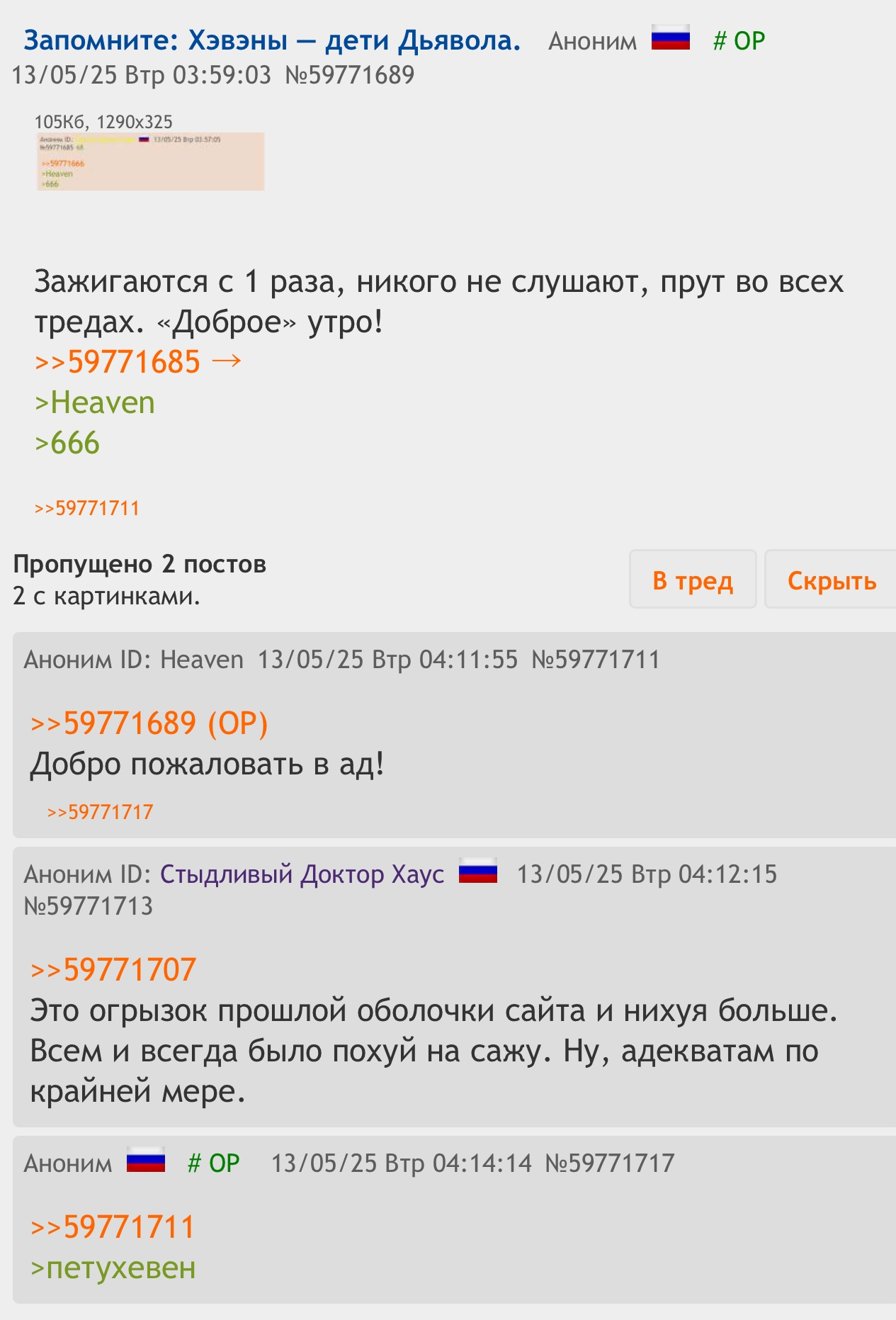 >>878877 Ссылки на треды (ныне могут быть удалены, но скрины останутся): https://2ch.hk/po/res/59770667.html https://2ch.hk/po/res/59771380.html https://2ch.hk/po/res/59771643.html https://2ch.hk/po/res/59771689.html Сама история (цикличная, каждодневная). Идёт утро. Все разговаривают на Дваче, но больше всех шумит именно Heaven. Как после пьянки (или полового секса, не суть). Так вот, начинается день, он становится уважаемым человеком, а остальные — лохами за 3 копейки. Дальше всё поворачивается именно в эту сторону, его превозносят, ставят в пример и делают, что хотят. Но наступает вечер. Всё успокаивается, даже «шизов» воспринимают полегче. И тут… Нарисовываются евгеи отсюда (дада, именно отсюда, из /zog), начиная искусственно создавать видимость думающих людей. Половина политача резко оживляется и верит им. Хэвэна либо сталкивают в канаву, либо запирают на замок, чтобы не мешал. Проходит ночь. Евреи общаются, смеются, веселятся (хоть и выдают (случайно и редко) ценную информацию). Потом уходят, оставляя после себя лишь опустевшие треды. Если попробовать поговорить с такими как ты, в ответ будет лишь тишина, так как подобных тебе на политаче уже НЕТ! Появляется Хэвэн, и день начинается заново…