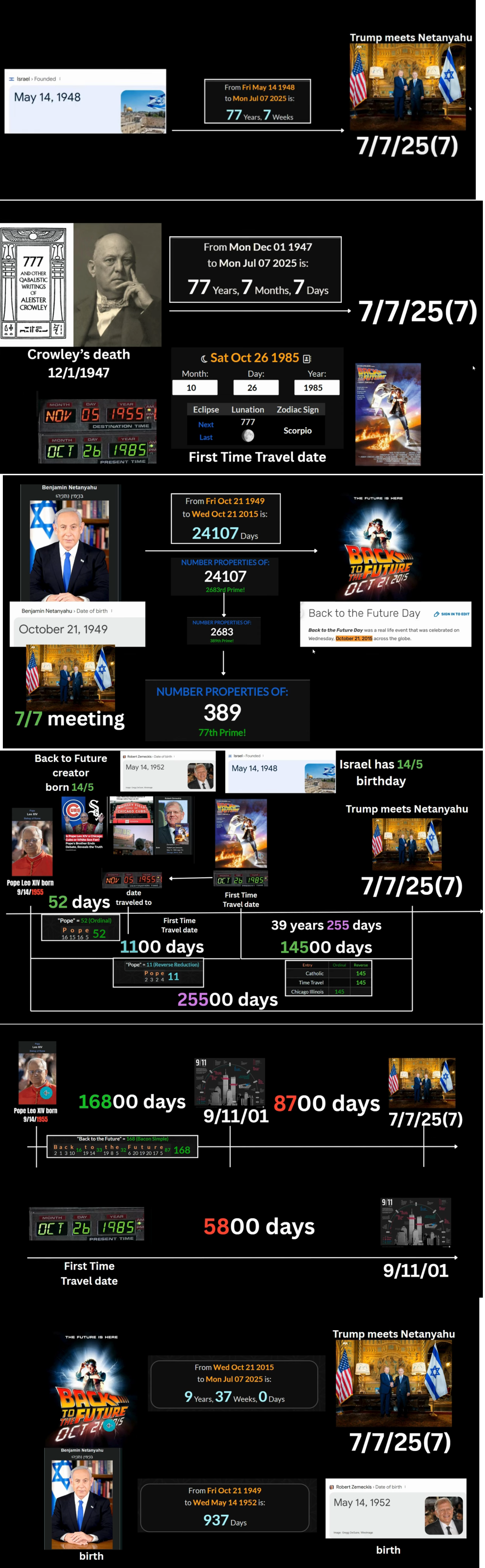 От смерти папы Франциска 21 апреля 2025 до 7 июля 2025( встреча Трампа и Нетаньяху) ровно 77 дней.