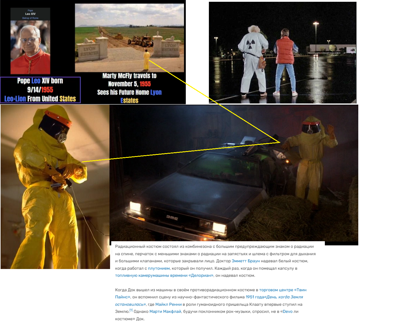В фильме "назад в будущее мы видим четкую отсылку на папу лео и ватикан. Лев, ватиканская шишка и дата 5 ноября( выборы в США, что интересно Роберт Прево первый папа американец из Чикаго)