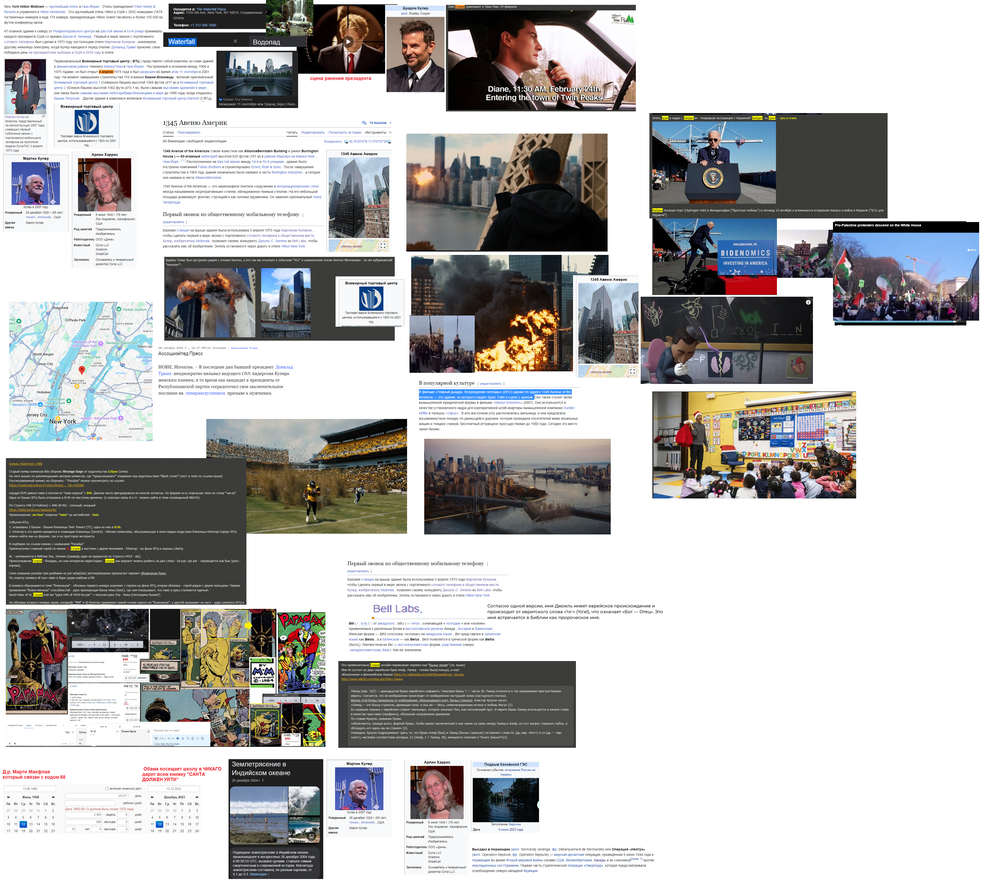 Причем что меня зацепило, создатель первой сотовой трубки связан через дату рождения с цунами в индийском океане, а жена его Харрис( как Камала Харрис) связана с днем Д( высадка в Нормандии и обрушением каховской гэс.