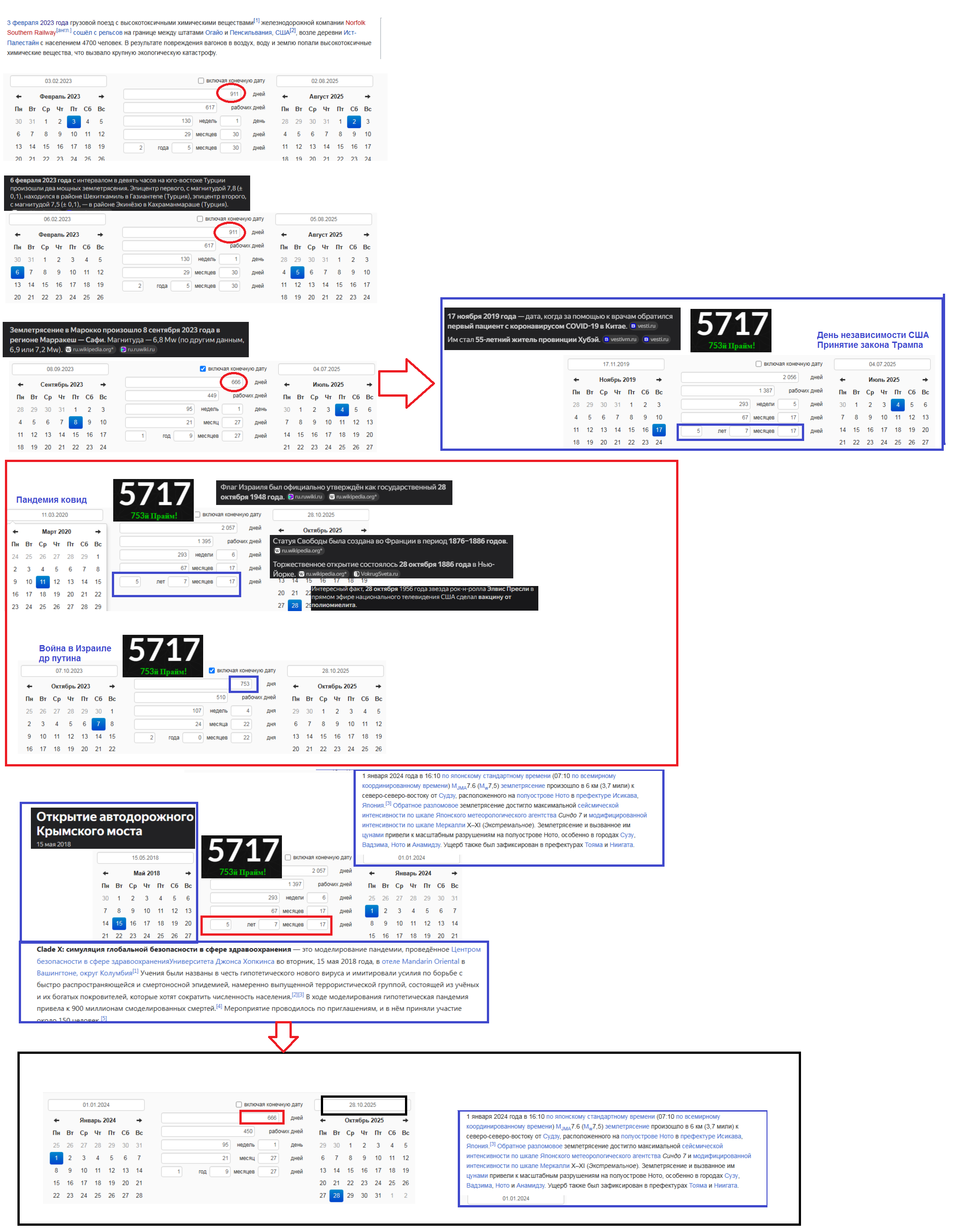 >>900201 И тут же вспомним, что от открытия Крымского моста 15.5.2018, дата которая совпадает с пандемическими учениями Clade X( +666 дней= 11.3.2020 пандемия ковид) до 21.11.2024 прошло ровно
