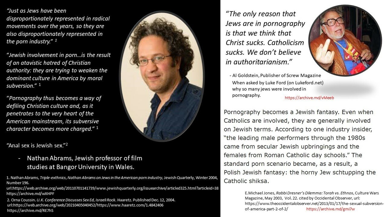 жид использует порно как инструмент контроля и инструмент снижения рождаемости среди "гоев", известен случай когда израиль взломал палестинское тв и транслировал порево. Большинству юзеров в голову не придет платить за прон, почему же порностудии не банкротятся, не парятся с борьбой с пиратством? По тому, что им дают бабки из вне, порнуха слишком полезный феномен для жида