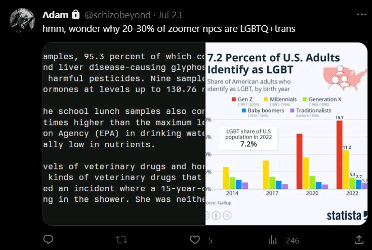 Теперь по теме. Современные мозгомойки точно влияют на принятие разнообразия этого мира. И хоть я натурал, но некоторые видео возбуждают, потому что я признаю таких девок как девок, но ущербных с двумя дырками заместо трёх с отростком, который меня не интересует. То есть лукизм и некое понятие женственности и мужественности как разделение влечения существует. А основное влияние на нас идёт со стороны взрослых. То есть дети по своей сути асексуалы, те самые о которых говорят, но никто не видел. А под гормонами начинается пляска страстей, которая в разном обществе приводит к разными результатам. Мне интересна тема жизни без секса и гормонов, поскольку в виду отсутствия оного взаимоотношения полов будут формироваться только с точки зрения развития/интереса. Поэтому основной вопрос треда не >Что с нами будет а почему мы пришли к такому моменту, когда выживание человека не есть основная цель и мы можем позволить себе заниматься всякой хуетой. Что собственно, не есть плохо. Хорошо же. Да?