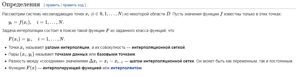 >>738883 >первый пикрил Если совсем упрощать, то интерполяция — это "по какой формуле соединить известный набор точек", например мы хотим построить график зависимости цифр твоего поста от их порядкового номера: f(1)=7 f(2)=3 f(3)=8 f(4)=8 f(5)=8 f(6)=3 Для рандомного икса f(x) ничего не значит (в посте нет седьмой/полуторной/минусстотысячпятисотой цифры), поэтому проводить график по этим точкам нельзя, но можно подобрать интерполирующую функцию F(x) = (-0.725x⁵ + 13.25x⁴ - 92.375x³ + 301.75x² - 446.9x + 246) / 3, которая совпадает с f(x) в ее значениях