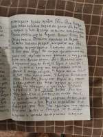 Стр. 1 Спаси Христос. Вот пишем вам братья поистине наше и время уже к тому настало. Мало осталось у нас времени да и мы о том уже вам и писали. Многое в прошлый раз мы вам поведали, очень о многом ведь написали да и честно черезчур много написали о том о чем лучше бы было промолчать. не перевел написано. Прошлое послание было осенью еще написано. Мы ведь несколько раз уже писали но не осмеливались всем передать. Хорош но не (мышь?). Все таки решили и написали дол ледко то с том. Написали и оставили всем. Не знаем кто взял кто прочел. Но мы долго то всем писали и очень старались. Мы люди уже не молодые (не перевел) старые мы уже. Рука и глаз не те, так что простите то нас. Как можем так и пишем стараемся. Мы вам в прошлом послании многое передали страшные вещи мы передали и писали и представить страшно было потому мы вам первых два послания не передали а вот третье взяли и передали. Уже не в моготу было нам видеть.