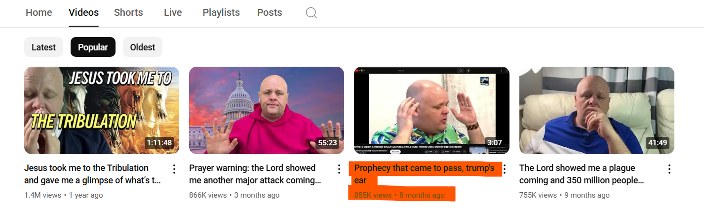 А вопрос у меня в следующем: у Биггса вообще есть успешные, УЖЕ СБЫВШИЕСЯ пророчества, кроме уха трампа. Да и оно выглядит словно исключение, лишь подтверждающее правило. Вот пикрил, он словно говорит нам между строк: эй, ребята, посмотрите, одно из моих пророчеств сбылось, все взгляните, я его даже перезалью на свой канал, чтобы все увидели, не ну видите же, мои пророчества сбываются