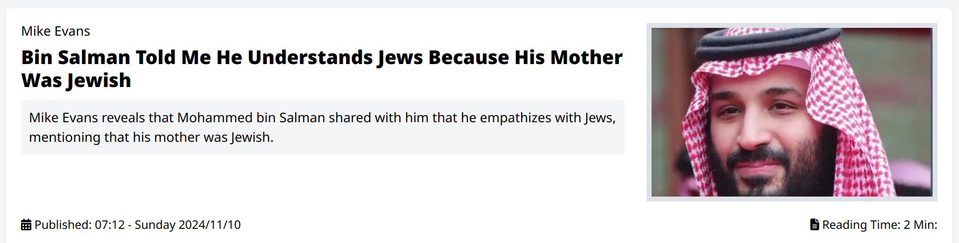 Биггсу был показано заседание в Берлине, где за круглым столом собрались все шишки Мира, там же присутствовал и Антихрист, от которого остальные ждали решения по урегулированию всех накопившихся проблем (развязанные воины, голод, эпидемии). Биггсу не было показано его лицо, но он предполагает (а может ошибается), что это принц Саудовской Аравии Мухаммед ибн Салман. Что вписывается в жидовский/сатанинское управленческую систему Мира, т.к. он признался, что его мать была еврейкой и клан Саудов имеет еврейские корни. Биггс говорит, что его будут транслировать по всему Миру и он будет представлен как "спаситель всего человечества". Все (?, но точно США) страны поднимут флаги новой Глобальной Страны, а какая-то часть мусульман будет звать его Махди, что будет являться для них глубоким заблуждением. Люди, похоже, массово будут принимать Ислам (искаженный?) (может, поэтому идет массовый завоз мигрантов из стран, где проповедуют Ислам, чтобы создать массовку) и будут молиться по пятницам перед большими экранами (с портретом Антихриста?). Одним из таких мест будет лужайка у Масонского храма в США, по периметру храма которого будут развешены видео-панели.