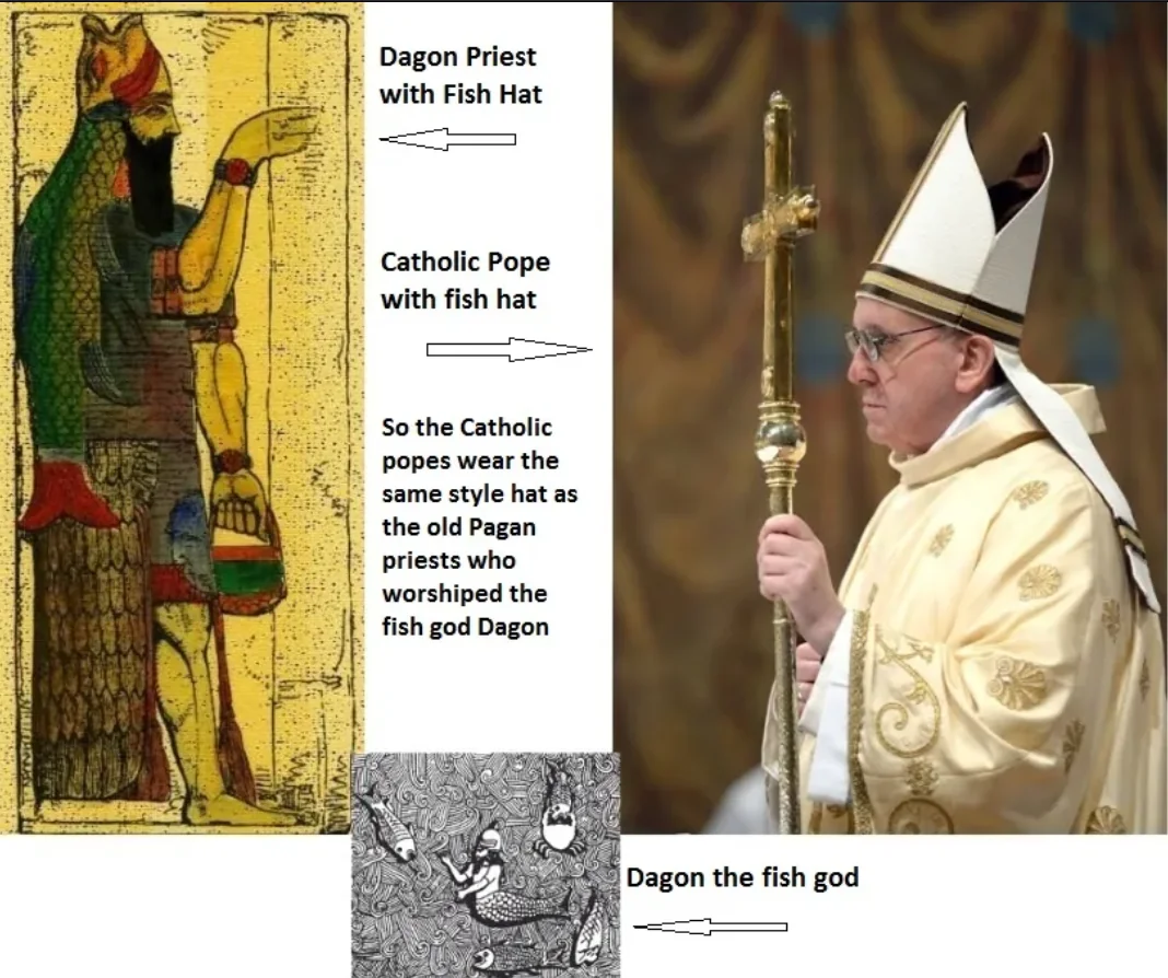 Это очень интересная тема на самом деле, учитывая еще его связи водой, посланников Apkallu, Оаннеса, ритуалы с водой шумерскиеогромная шишка в Ватикане и все эти посланники Энки тоже были с шишками и пр, атак же схожесть названия шапки Митра и собственно Митры посланника, а так же то что видом она напоминает сбоку будто бы рыбья голова раскрыта. Шумеро-аккадские жрецы просто косили под Оаннеса. При этом Оаннес как и Иоанн не ели человеческой пищи и это отмечалось как и у шумеров, так и в Новом Завете. Иоанн как бы ел, но... акридов и дикий мед.