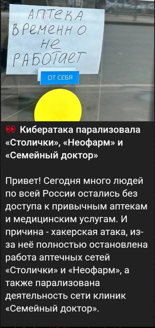 >>874639 (OP) Ну и в итоге до чего здесь зоганы-детективы докопали? Отключение запланированное? Тогда для чего, цель какая? Или аварийное? Тогда вопрос из-за чего, что произошло? Или таки атака какеров? С какерами - рабочая версия более чем, и при этом пострадавшие не хотят ее подтверждать, ибо придется тогда обозначать, кто именно атаковал, и что-то делать в ответ. А в ответ на такую атаку можно вплоть до СВО объявить, т.к. такая атака по сути является актом войны, нападение на ключевую инфраструктуру, однако.