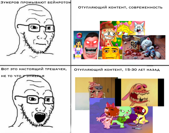 Почему раньше этого не было? Лет 15-20 назад, контент рассчитанный на детей, спокойно обходился без копрофилии, детских беременностей, садомазохизма, гурятины и.тд. Даже не говоря о Советских мультфильмах, "Чип и Дейл спешат на помощь", "Утиные Истории", "Черепашки Ниндзя" и.тд. Спокойно без всего этого обходились, или что, вы хотите сказать что за 20 лет, человечество как-то радикально поменялось, и теперь без этого никуда? Если это нужно для "привлечения внимания и популярности" (запретный плод, бла бла бла...) То хули раньше детский контент спокойно набирал популярности, не прибегая к "запретному плоду".