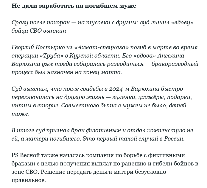 В тиктоках и онлифансах 90% контента - это кривляния самок. А учитывая огромную смертность мужчин - завывания, что якобы женщин в России или где-то ещё становится меньше - это просто смешно. В любой поликлинике даже в платной - в очередях сидят тетки и бабки. Мужики в лучшем случае до 60 доживают, а после 40 уже начинают телепортироваться в Вальхаллу. А всё нажитое потом и кровью - после смерти холопа - остается бабе. И наследство бабы, как правило, оставляют тоже только себе подобным - дочерям, внучкам, тетям сракам. На худой конец - мошенникам сольют или государству оставят, терпильному полу назло. Отсюда все эти истории про бабок-миллионерш в последнее время.