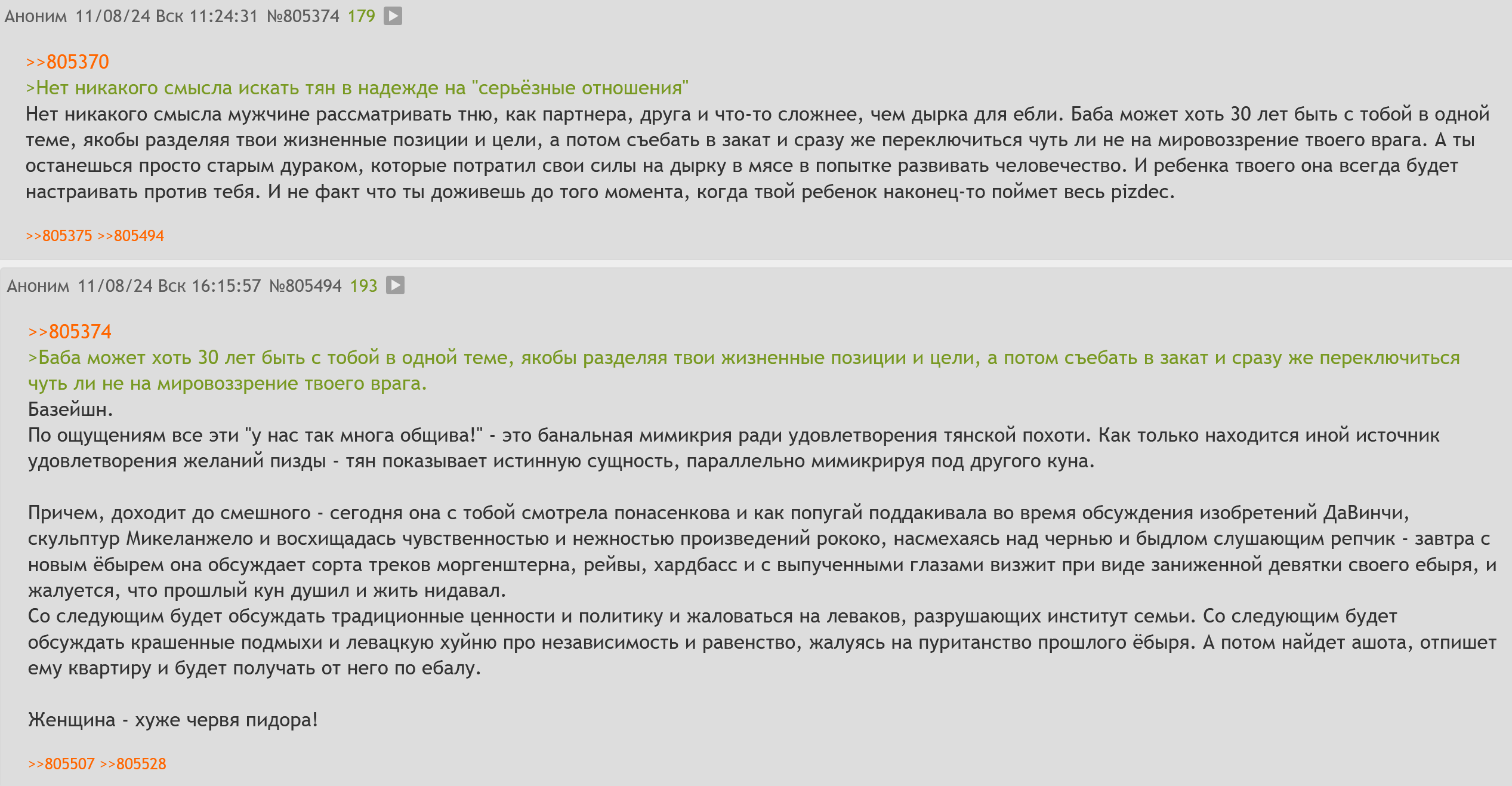мы,мужики,хуже баб.если кто и дорвётся до писячки-то ему будет сразу похуй на со своих собратьев,своя рубашка ближе к телу.предательство своего вида -у нас в генетическом коде.только нормисы могут читнуть реальность этой пиздоматрицы-с наименьшими потерями для себя.