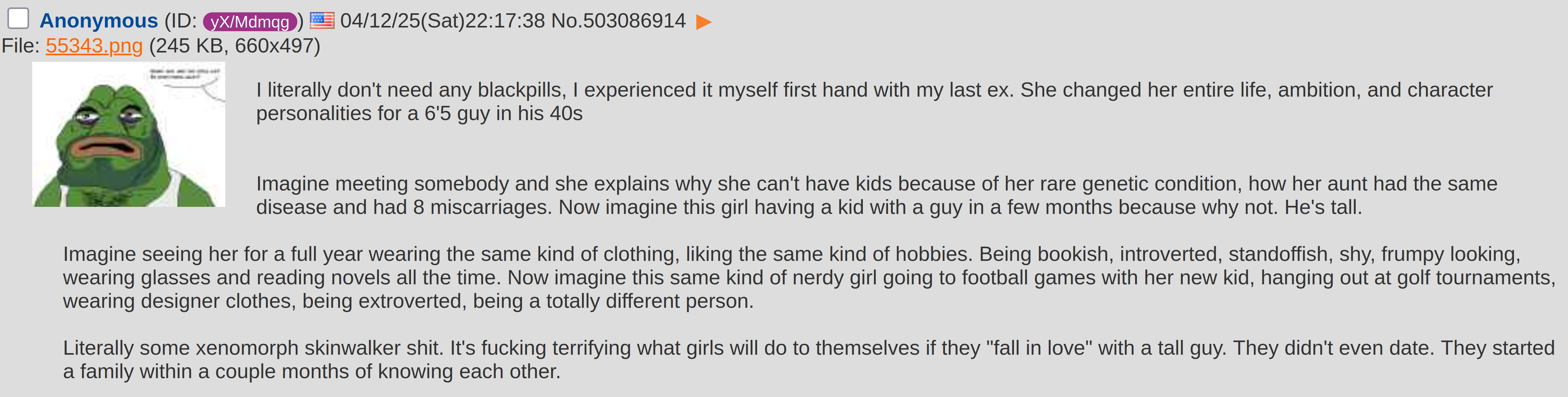 Ну а дальше по теме треда. Знаете, почему самок становится всё меньше? Если тред правда. Потому что среди них шизы становится все больше. Лол
