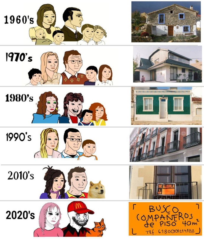 Ты конечно не упомянул коммуналки, жилье для научных сотрудников 70-80, номенклатура и подсосы номенклатуры всех мастей, но по сути верно конечно. Но все равно грустно чет пиздец
