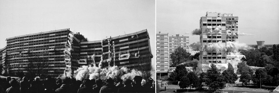 🚧 Знаковые примеры сноса Les Minguettes (Венисье, Лион) Один из самых известных примеров. Район стал известен в 1980-е из-за социальных волнений. Несколько башен были снесены в 1990-е и 2000-е.