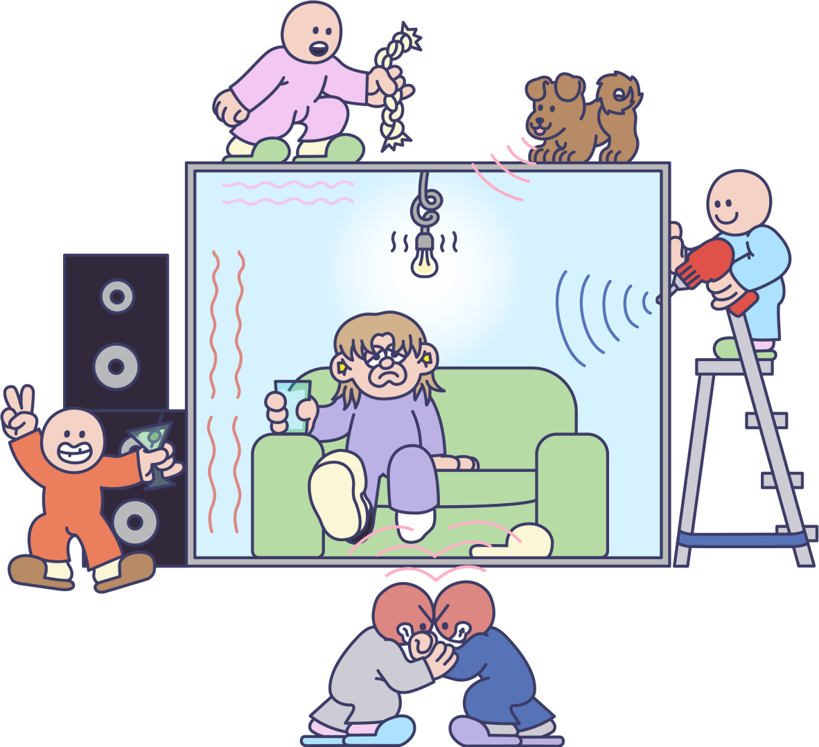Соседи это зло в обществе где каждый сам за себя и преследуют только свои интересы и когда на ближнего насрать + бесполезное государство и менты, которые не приезжают на шум вообще.