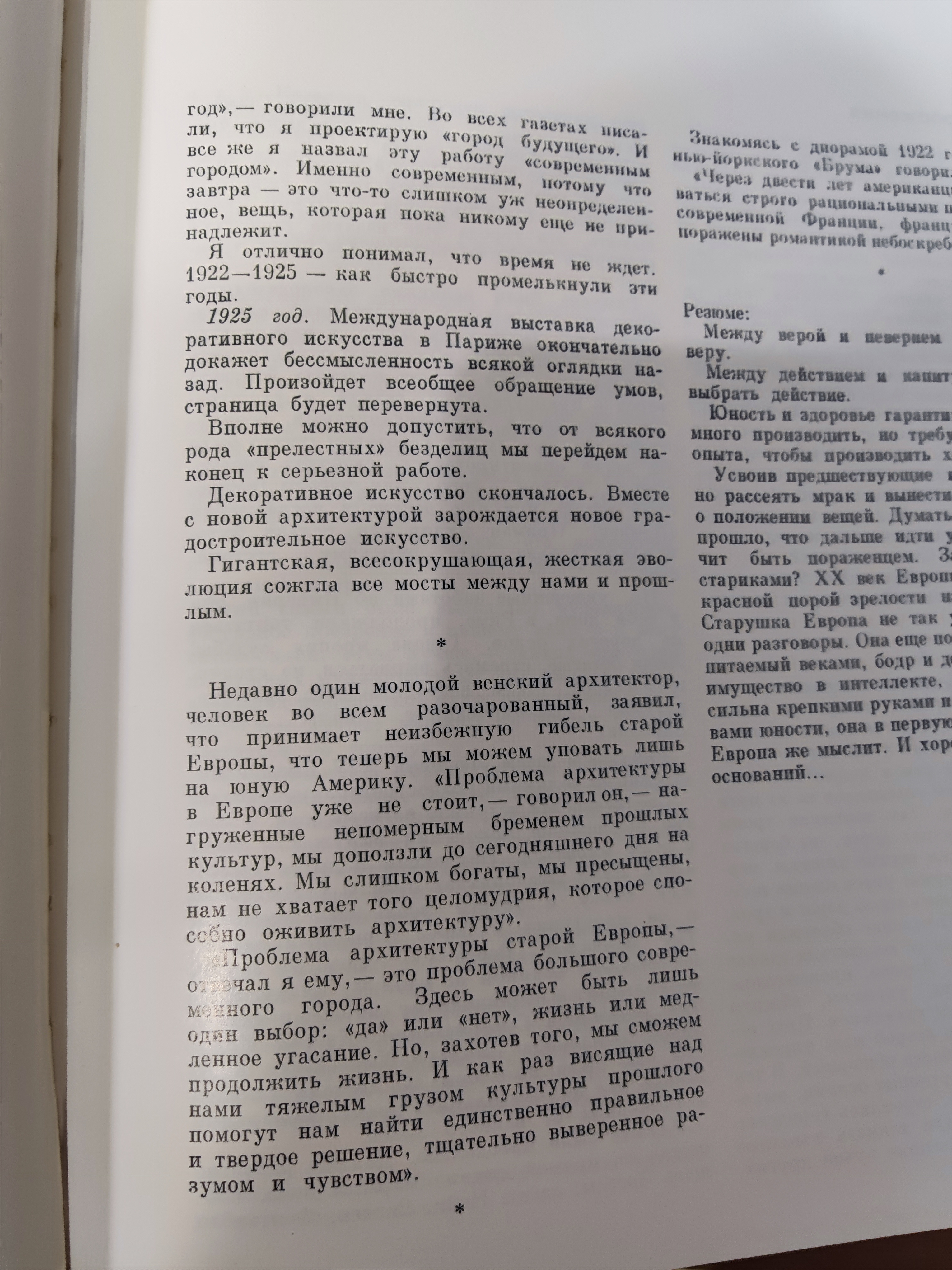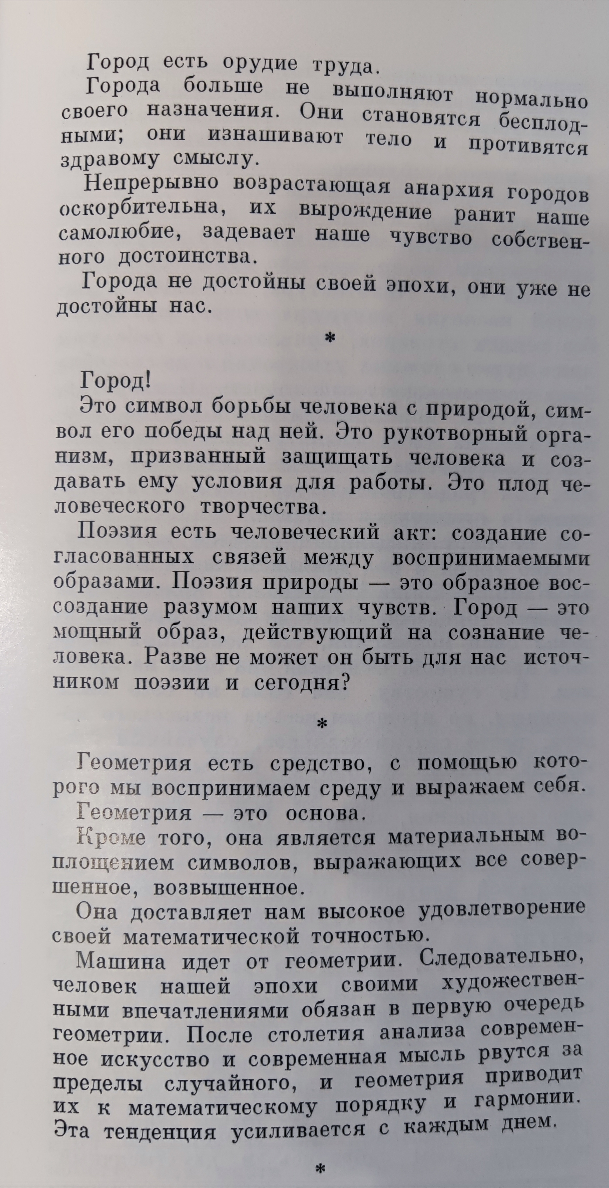 Видишь ли, великие люди которые пишут книги (а г-н Корбузье писал книги нон-стоп, можно прикинуть как он овладел словом и формой) иногда заворачивают ну очень глубокие мысли.