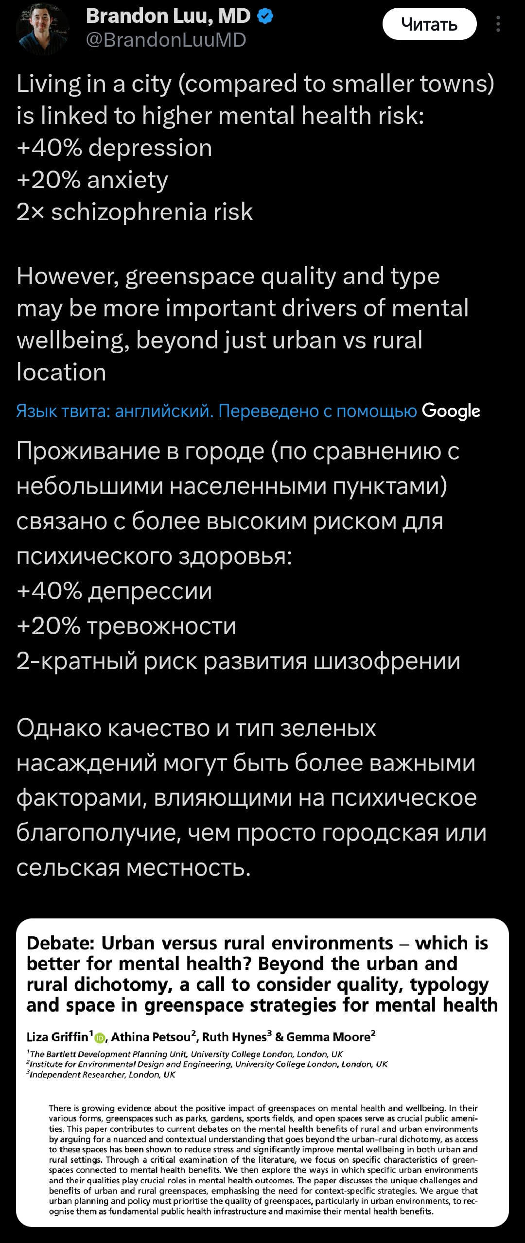 >>959518 Да, это не просто так и я, как чувствовал когда перестал ходить гулять и создал тред, и наконец нашёл этому пруф. Зелень и растительность в городе очень оздоравливает психику. Смотрю на старые фото 10-15 летней давности и ахуеваю, сколько деревьев было - особенно вдоль дорог.