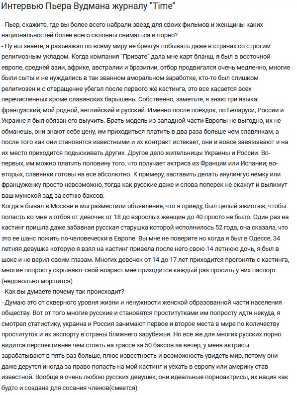 Вы спрашиваете: «На кого работает Вудман (Пьер Вудман, порно) и какие бизнес-интересы представляет?»
