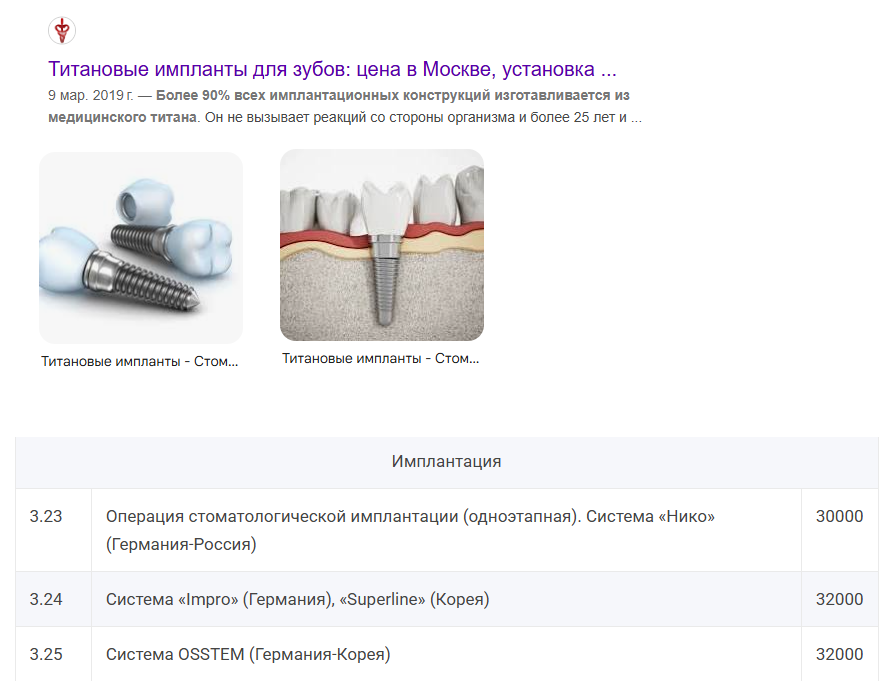 Поддвачну Если обычный строительный титановый болт стоит 50р, то пускай даже медицинский титан особой чистоты 99,99% будет в 100 раз дороже. Тогда титановый болт должен стоить 5000р. Даже допустим их под заказ на станке вырезают, ну 7000р. Коронка вообще из металлокерамики, у неё уже не так важна чистота состава, она с костью особо не контактирует, коронка 1000 + вырезка коронки на станке 3000р = 4000р.
