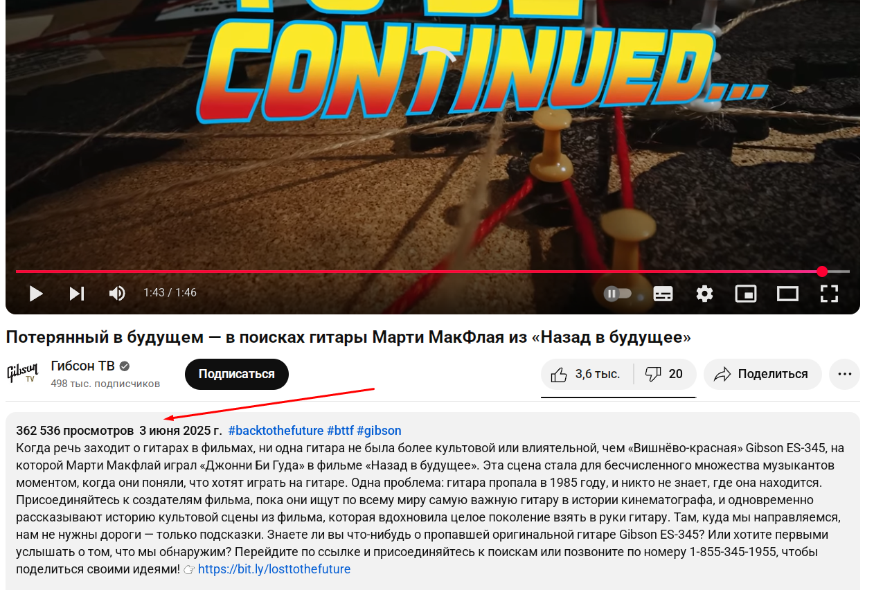 Компания Gibson начинает глобальный поиск пропавшей электрогитары Back to the Future ES-345, анонсирует документальный фильм Момент в поп-культуре, который определил 1980-е и вдохновил гитаристов по всему миру, показан в новом документальном фильме Gibson Films от режиссёра Дока Кротцера.