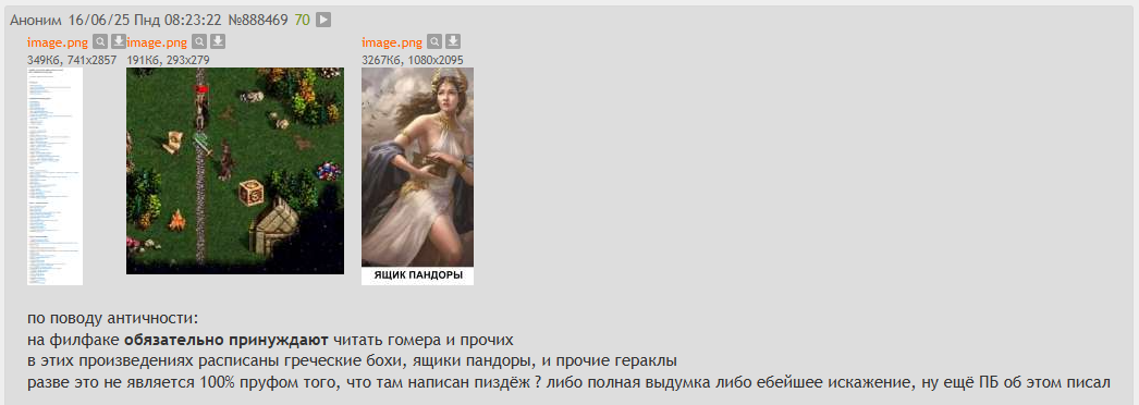 >>908408 > Чувак на ютубе свою сперму в яйцо помещал куриное и получился гибрид урод. >Его потом убили за эту инфу. Потому, что показал, что это все реальность. Три года кончал в яйца, а потом ни с того ни с сего убили, лол. И видео с ютуба даже не удалили. > Ну и много всяких мифов, легенд есть с намёками. Какие мифы? >В 19 веке уже были специальные бэби боксы устройства тоже, похожие на современные китайские искусственные матки, которые уже функционируют. Бэби боксы до сих пор есть и это не искусственные матки. > Ты просто школьник ещё не готов к такой инфе, понять можно, смешочки всякие шуточки не серьёзно, уроки доделай браток кстати, завтра же в школу?) или ещё в доту не поиграл?)) Я студент и у меня карикулы. А вот ты как будто школьник из 2к16. Гомункулы, кек, спасибо за ностальгию. >>908396 > Какая прибыль от стравливания? Колонизация, очевидно же. > Чтобы прибрать к рукам египетские месторождения паровозов и потом продать их для прибыли? Чтобы получить доступ к месту строительства Суэцкого канала, очевидно же. >>908376 > Я много наблюдал переписывателей истори, но турецкие лизатели тухлых натрашкиных дырок, пожалуй, самые нелепые из них Греки с оракулами ещё более нелепые. >Сказывается традиционно низкий iq южан Поэтому южанам грекам историю северяне англичане, немцы и русские придумали.