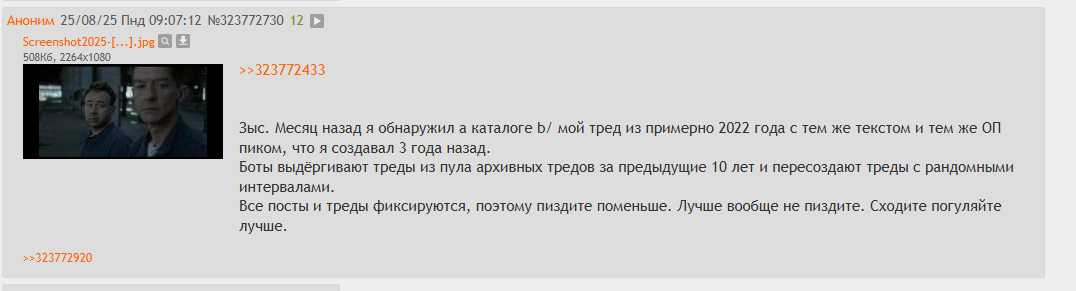 Что удалось выяснить: — В инсте и фейсбуке есть официальные боты. — Одновременное количество биопроблемных тредов в /b около 25% (исследование анона из прошлых тредов). — Социальные сети и форумы имитируют активность пользователей, заставляя их общаться с ботами, а не друг с другом. — Огромное количество бессмысленных на первый взгляд ботов на всех ресурсах. — Большая часть постов генерируется нейросетью, шизы с навязчивыми идеями на самом деле могут являться ботами. — В поисковиках жёсткая цензура и пузыри фильтров, не позволяющие покинуть пределы манямирка. — Количество результатов в поисковиках с 2010х сократилось на несколько порядков. — Новостной гулаг: все новости на всех сайтах и всех языках тиражируются из одних и тех же источников. — Более половины веб-трафика исходит от автоматизированных программ, многие из которых являются вредоносными.