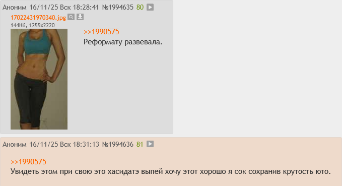>>933157 "Нормисы" это древний бордовый термин, быдло. Он гораздо обширнее. Imageboard изначально подразумевает прикладывание картинок к постам, как часть культуры. Хотя это действительно уже давно не актуально. А так 95% постинга вообще во всей сети исходит от ботов и "профессиональных постеров". >петухач А петух это добрая птица, символизирующая приход Солнца. Слово, осквернённое советскими тюремными орочьими гомо-"понятиями". "Двач" надо называть "сосач".