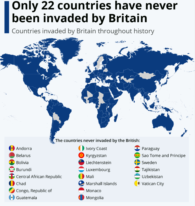 Англо-саксы - самая агрессивная на планете нация. США и Бритаха вторгались почти во все страны мира за последние 200-300 лет. Бритаха с большим отрывом является причиной большинства праздников "Дней независимости" на планете.