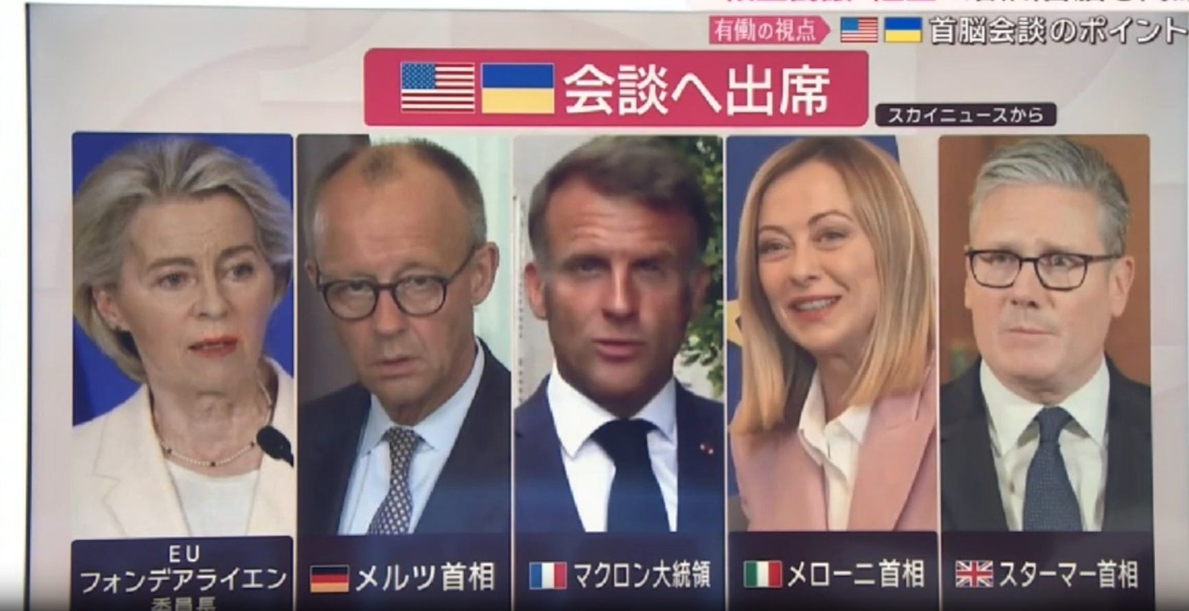 - Президент Франции Эммануэль Макрон - Канцлер Германии Фридрих Мерц - Премьер-министр Великобритании Кир Стармер - Премьер-министр Италии Джорджа Мелони - Президент Европейской комиссии Урсула фон дер Ляйен - Президент Финляндии Александр Стубб - Генеральный секретарь НАТО Марк Рютте