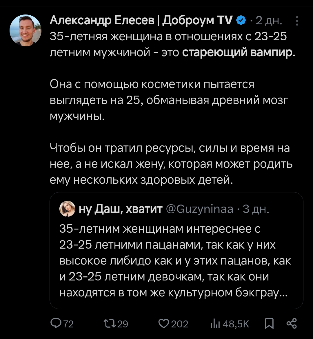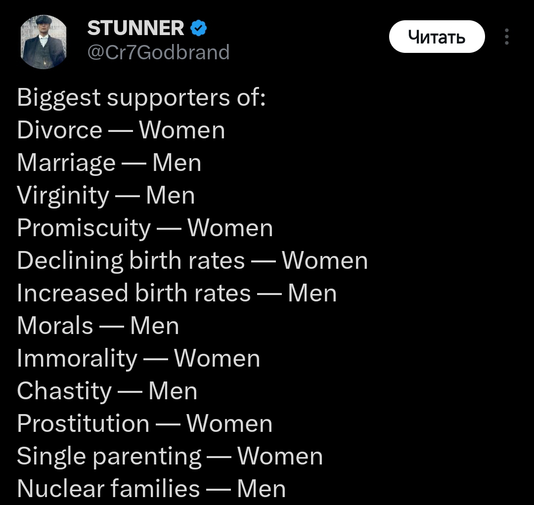 "Феминизм - это наше изобретение по двум причинам: Раньше только половина населения платила налоги,