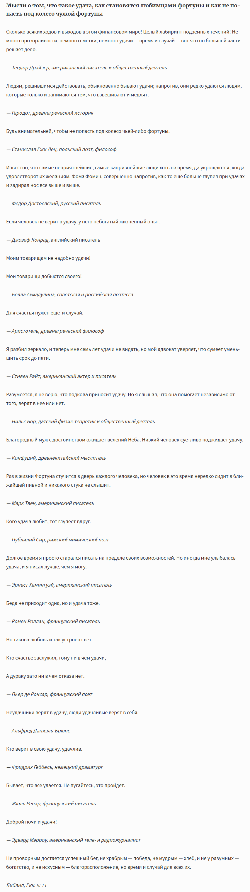 рассматривая вопрос удачи - надо думать не в плоскости "бывает / не бывает" т.к. дохуя сторисов и примеров а лучше подумать над тем как это устроено этот тред и прочие сторисы показывают наличие ЗАКОНОМЕРНОСТЕЙ а закономерности это признак неких законов или правил