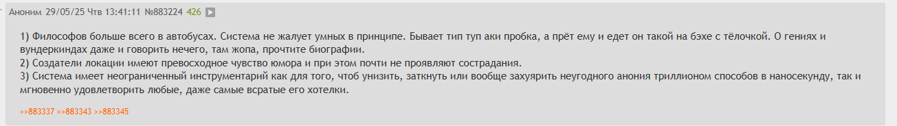 >>922707 >Хуйню выдал Нет ты >В прошлых тредах Подобную базу >>922056 так-же выдавали, но тут живой опыт. И этот опыт переживают очень многие люди. >намного интереснее аноны рассказывали Тебе что-бы интересно? Или информацию? тем-более с живого примера? Или ты не способен мысль более широко развить?