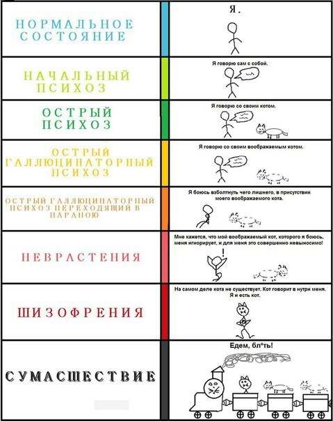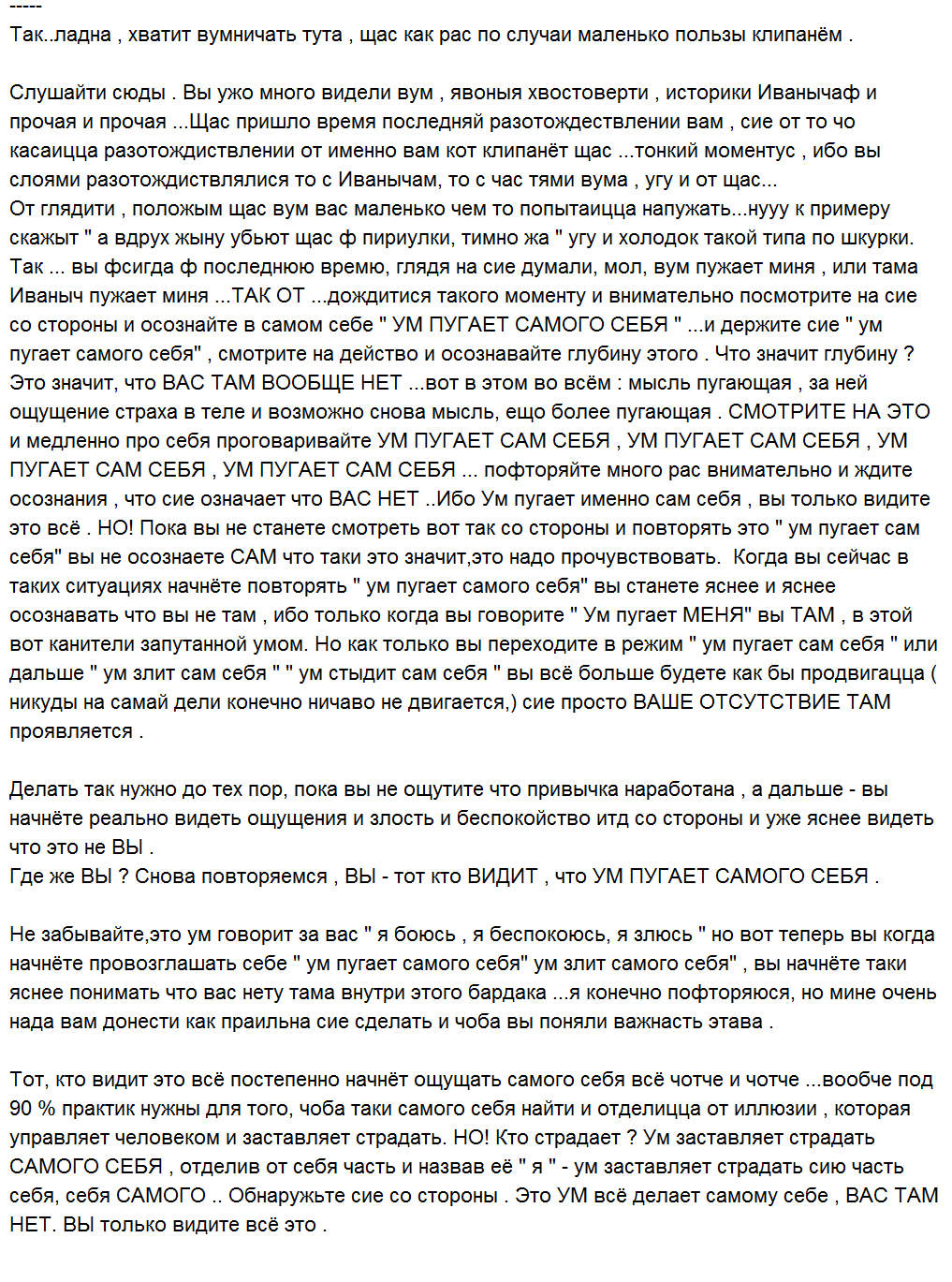 Ладно, не суть. Это сейчас я отсматривая в прошлое понимаю что мне бы помог галоперидол. Но в тот момеет ты не веришь в это, ты веришь в бред. И так короче я жил 1.5 года, в полной дереализации, я гонял мысли где я? В матрице? В игре? Искал знаки по всюду, просто по дефолту сканировал номера проезжающих машин, надписи на стенах, рекламные щиты и баннеры. Думал, а не NPC ли все вокруг. Если это игра, пытался прочитать сюжет. Думал что Богоизбранный, если не сам Бог. Короче каша. Аморфность мышления сохранилась по сей день, поэтому кому то сложно будет читать я думаю.