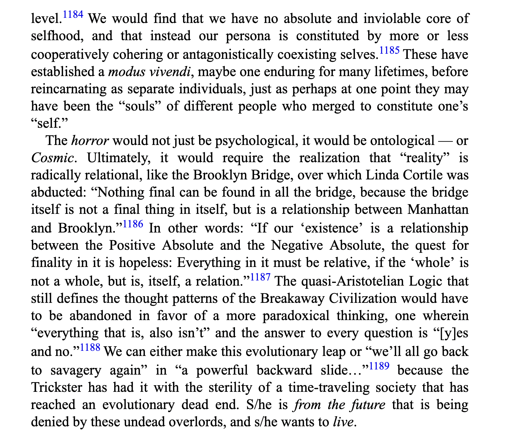 На самом деле там весь бложик надо внимательно изучать. Кот всегда писал об одном и том же, — об иллюзиях ума. Неважно где всё происходит снаружи или внутри, ибо одно отражается в другом и составляет единое целое, по котовой науке.