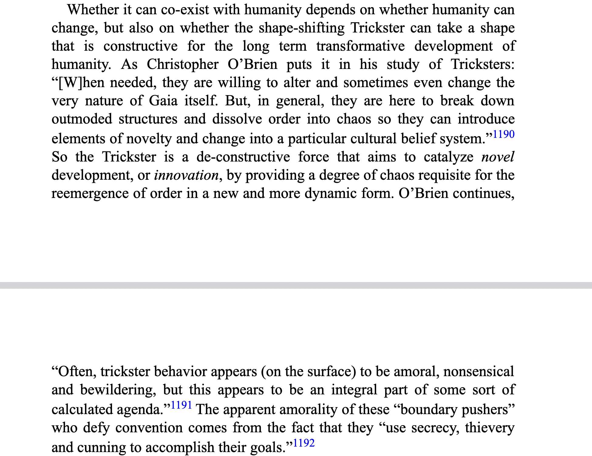 >>912681 Потому, что мир устроен сложнее, чем нам кажется. Человеческая логика здесь не работает. Совсем не работает. Я сейчас копаю в сторону Остина Спейра. Считаю, что человечек реально наладил связь с ET (архонтами, бесами). По его концепции - сущи воспринимают информацию в хаотичном формате. Не знаю, как объяснить доступнее. В общем, в мифологии и фольклоре это тоже находит отражение. Право это лево, черное это белое. Что-то такое, но не так примитивно как банальная инверсия, разумеется.
