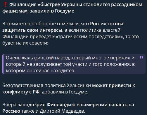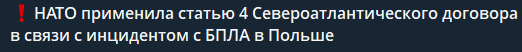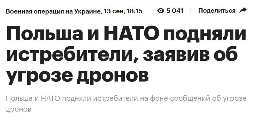 >>912641 В Польше созвали экстренное заседание правительства. «Скорее всего, мы имеем дело с масштабной провокацией. <...> Это первый случай, когда российские беспилотники были сбиты над территорией страны НАТО, и именно поэтому все наши союзники относятся к ситуации очень серьезно», — заявил Туск. Он сообщил, что с начала суток дважды встретился с президентом Каролем Навроцким.