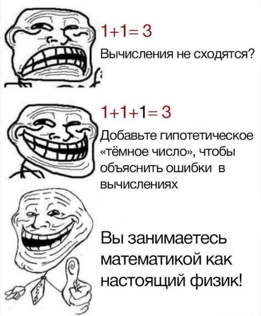 Что-то ОП начал откуда-то не оттуда. Физика не существует без математики. А математика - это база науки. Только не науки, а НОВУКИ. Потому что математика - это великая вещь, да, но это всего лишь НАША ЧЕЛОВЕЧЕСКАЯ УНИКАЛЬНАЯ СУБЪЕКТИВНАЯ интерпретация как бы кода реальности. 1+1 никогда и нигде в реальности не равно 2, абсолютно одинаковых вещей не существует ни на каком уровне. Наша математика неточная сама по себе. Число Pi мы никогда не осилим. В итоге все решают мелочи, но эти мелочи недоступны нашим расчетам. А современная НОВУКА как бы только и делает, что якобы копается в мелочах, в ткани реальности. Не имея точности при этом. В абсолютно любой расчет заложена некоторая ошибка, хоть ты усрись. И тогда по совокупности микроскопических ошибок в и без того предельно сложных и точных расчетах возникает необходимость в заплатках. И начинается. И одновременно с этим НОВУКА не знает, как работают простейшие лекарства. Работают, вот формула препарата, а что конкретно происходит новука не знает до сих пор. И эти же люди накукарекали уже 100 томов о том, об этом, спорят, пилят гранты.