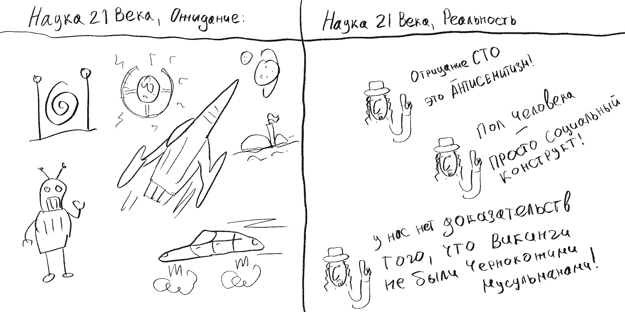 Настоящий заговор в науке состоит в том, что тебе под маской прогресса, приправленного технооптимизмом, впаривают инструменты контроля и управления тобой же. Скажем, у викингов не было ни пороходов, ни самолётов, и это не мешало им свободно шароёбиться по доступной им части планеты и беспрепятственно допиздрячить аж до Северной Америки. Тебе же, чтобы купить билет на автобус до соседнего села, нужен паспорт гражданина. И скажи спасибо, что только паспорт, а не биометрию ануса.