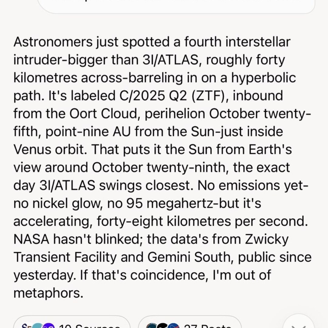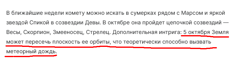 Не знаю почему всем настолько похуй, но тут 7 комет к Земле направляется, ну вы поняли 7 вслед за Атлсаом который очевидно космический корабль пришельцев которые будут устраивать уничтожение человечества в ближайшие несколько месяцев. https://www.youtube.com/watch?v=th-WDBu3_ZA&t=34s