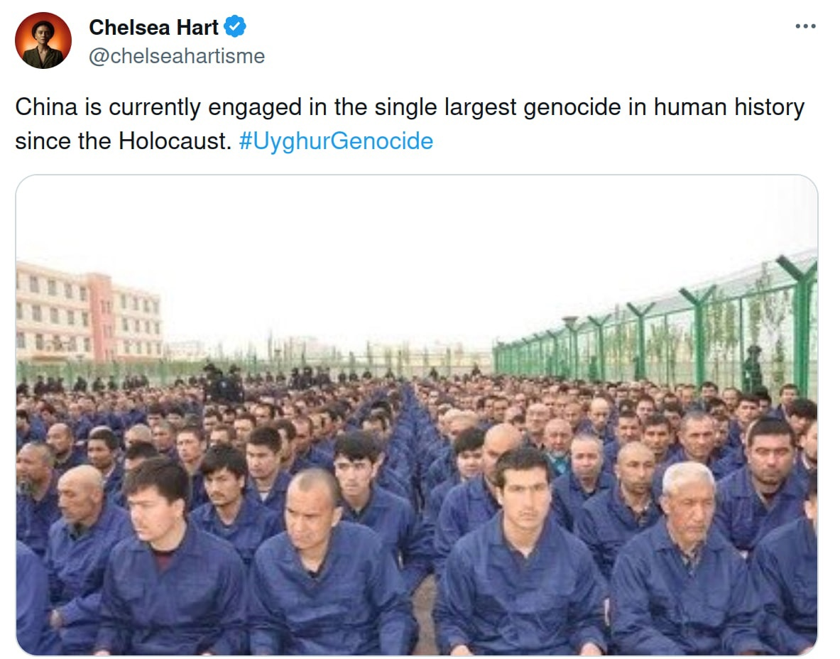 При этом любые пруфы "претеснений уйгуров" выглядят примерно как на пикриле: "Китaй в данный момент устраивает самый гигантский геноцид в истории человечества со времён холокоста ХэштегГеноцидУйгуров".