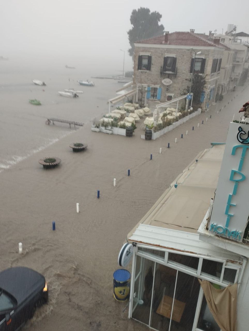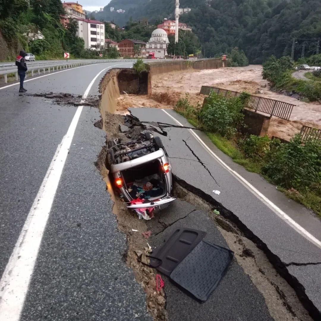 Из-за сильных дождей местная река затопила несколько улиц, на дорогу сошёл оползень. Вышедший на сушу, водяной смерч, опрокинул грузовой транспорт и повредил здание.