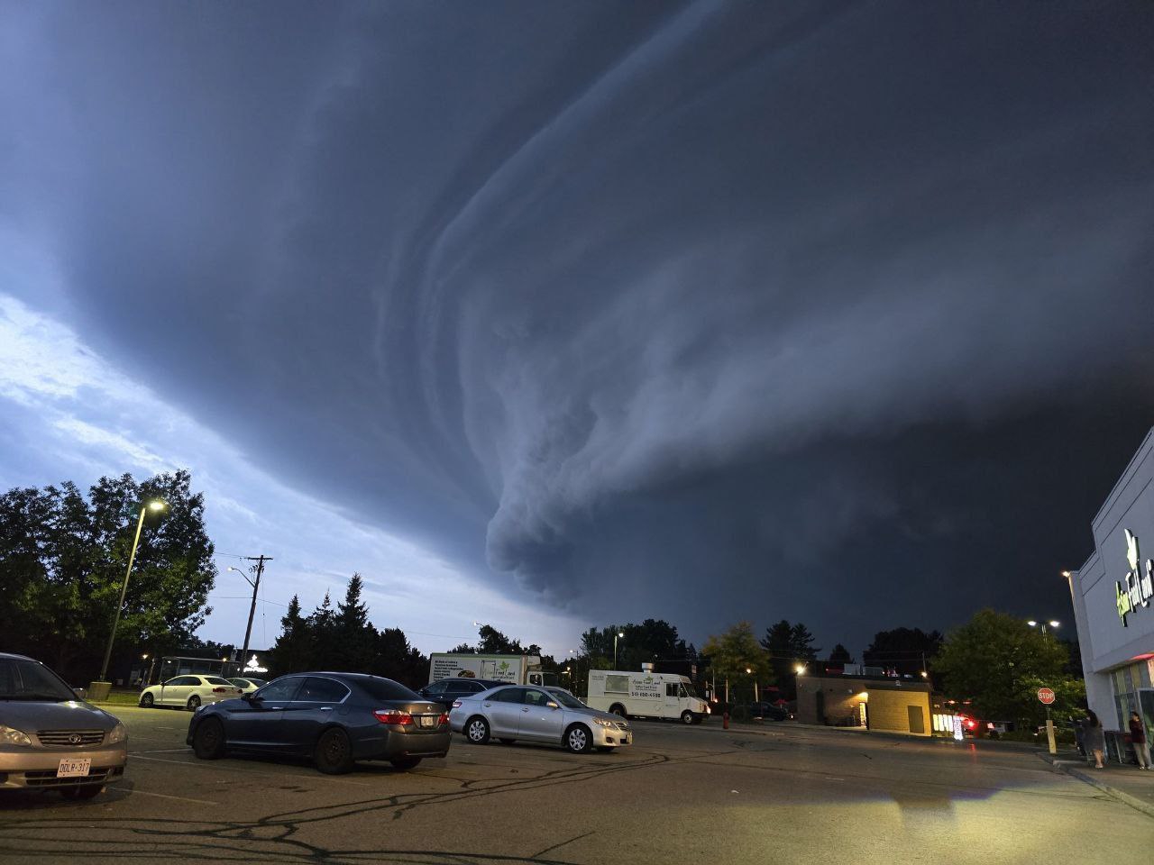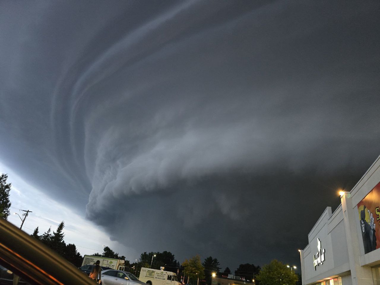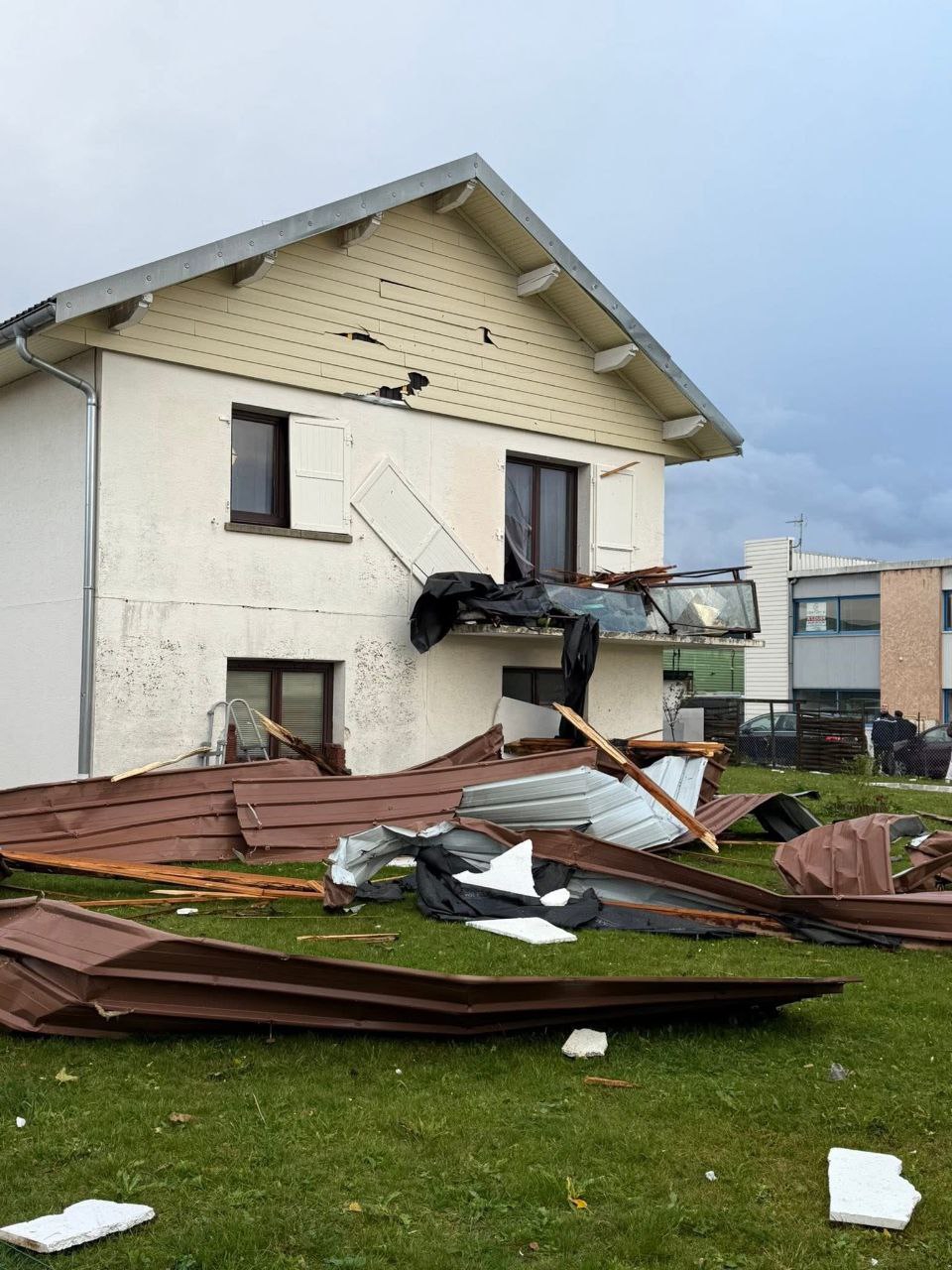 Смерч обрушился в понедельник вечером на город Эрмон в районе 17:30 по местному времени. Он с лёгкостью повалил строительные краны, один из которых повредил крышу и верхние этажи жилого дома.