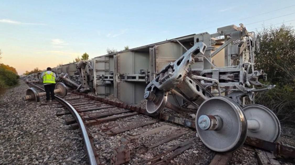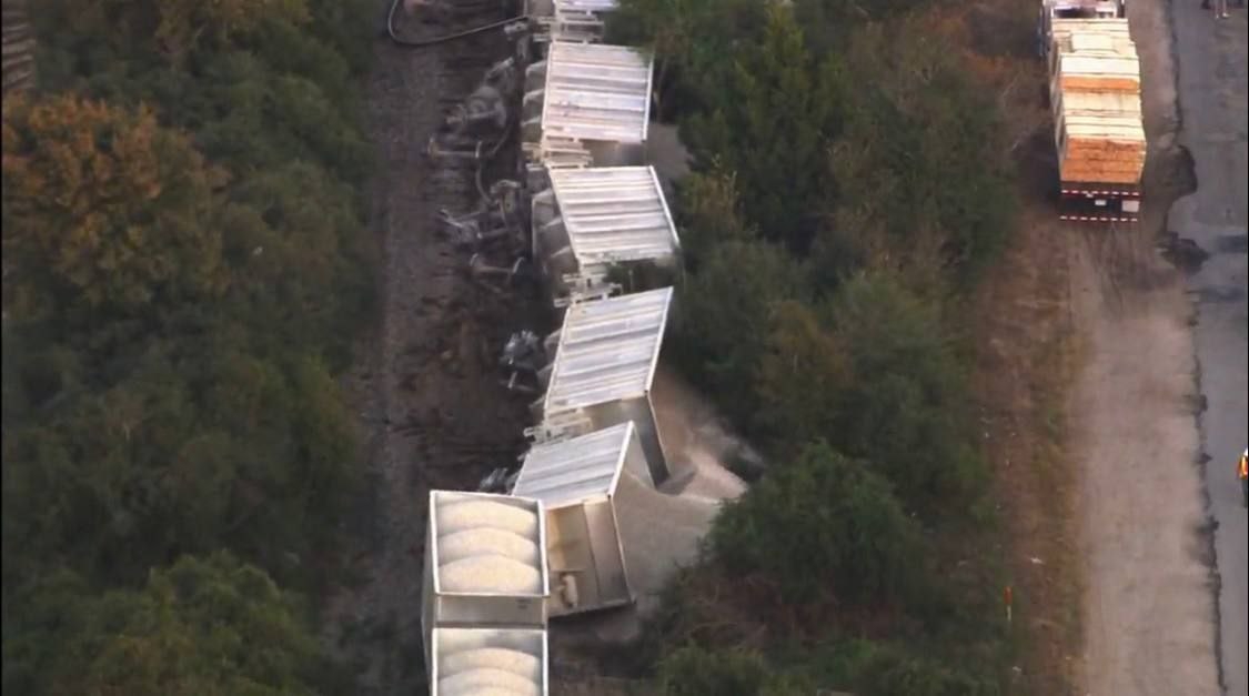 Грузовой поезд сошёл с рельсов в Ас Невес, в северном испанском регионе Галисия, после того, как оползень заблокировал путь, в результате чего водитель получил травмы, а 9 вагонов перевернулись.