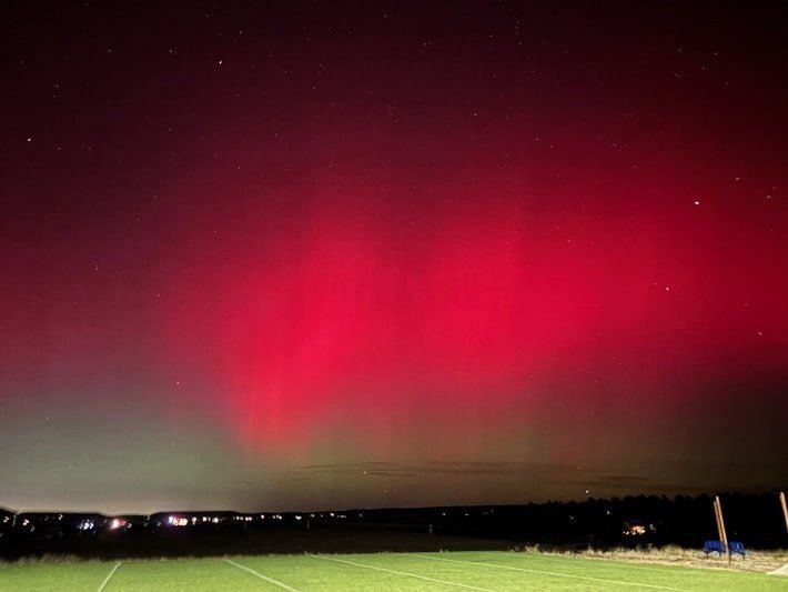 Следствие недавних магнитных бурь по Земле проходят многочисленные северные сияния, некоторые настолько яркие, что снег тоже буквально светится зеленым