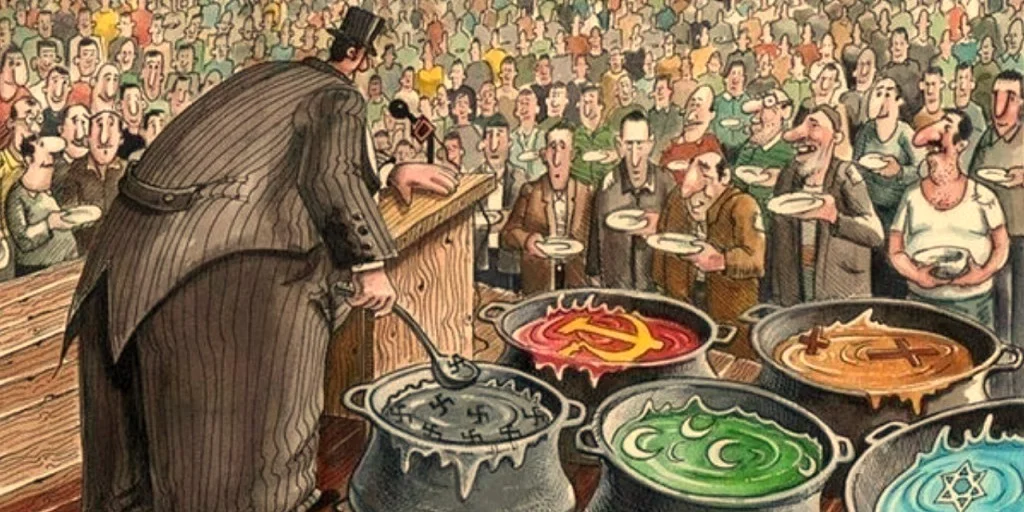 Глобальный правый религиозный поворот. Потом будет происходить фашизация этого движения и крестовый поход против "левачков". Прибавь к этому будущие ядерные взрывы Третьей Мировой, и сам подумай, насколько близок будет этот движ к Гитлеровской суете. Это фундамент к тому, чтобы следующим этапом осудить религиозников как новых фошистов.