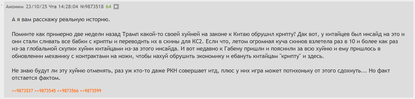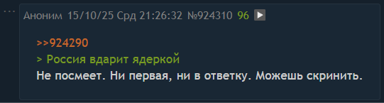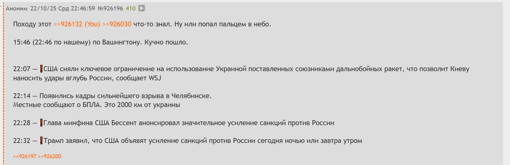 Мне, кстати, ципсо в политаче сказало не называть дат, чтобы никто не мог меня заскринить и упрекнуть в несбывании. А я говорил, что с 1 ноября не будет денег на выплаты всу, но это не мои слова.