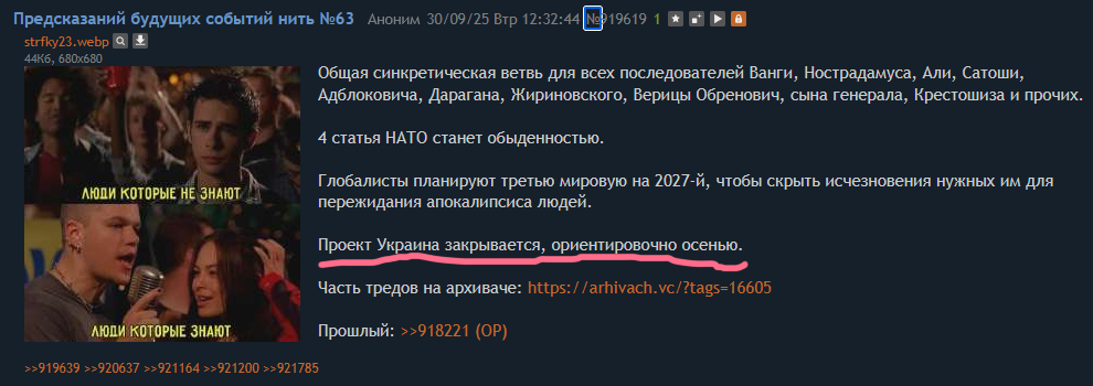 Зачем итт обсуждают всякие БП и прочие почалоси? С 2022 нихуя не сбывается ведь из этого. Реально существуют шизы, которые верят в три дня тьмы или в атлас или это боты?