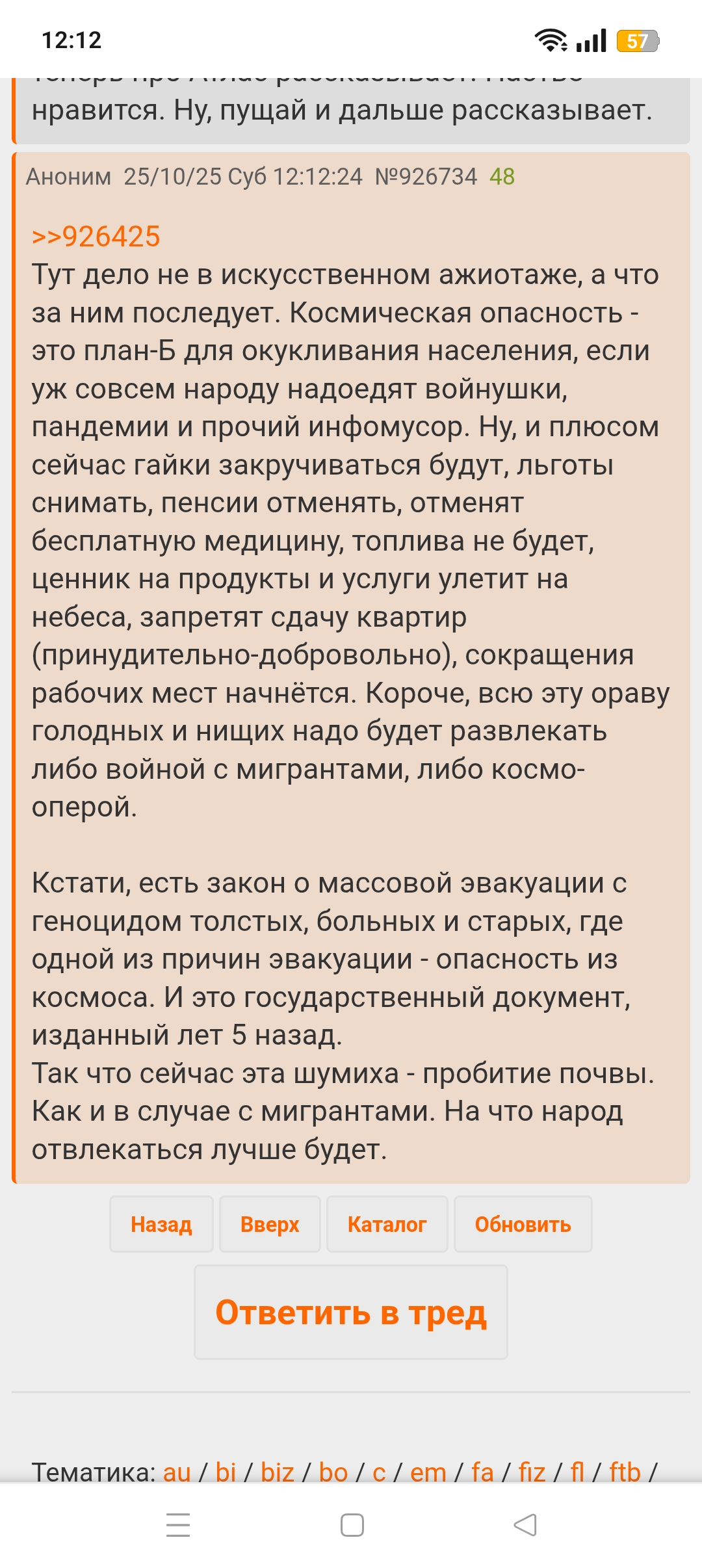 >>924332 Потому что это тестирование общественных настроений и мнений, засекретив инфу о скучной и ненужном камне из космоса, можно вызвать ажиотаж и бурю интереса к теме, а далее общественное мнение можно вбросами прощупать на предмет неких пришельцев, примут не примут эту чушь собачью. Если хорошо запугать и устроить спектакль в небе по теме инопланетян, можно на этом страхе человеческом а) снять много энергии б) ввести любые драконовские законы и меры, ведь главное это «мир и безопасность». Зогачеры и шизы конкретно здесь работают на интересы коллективных швабов, потому что разносят нужные им нарративы.